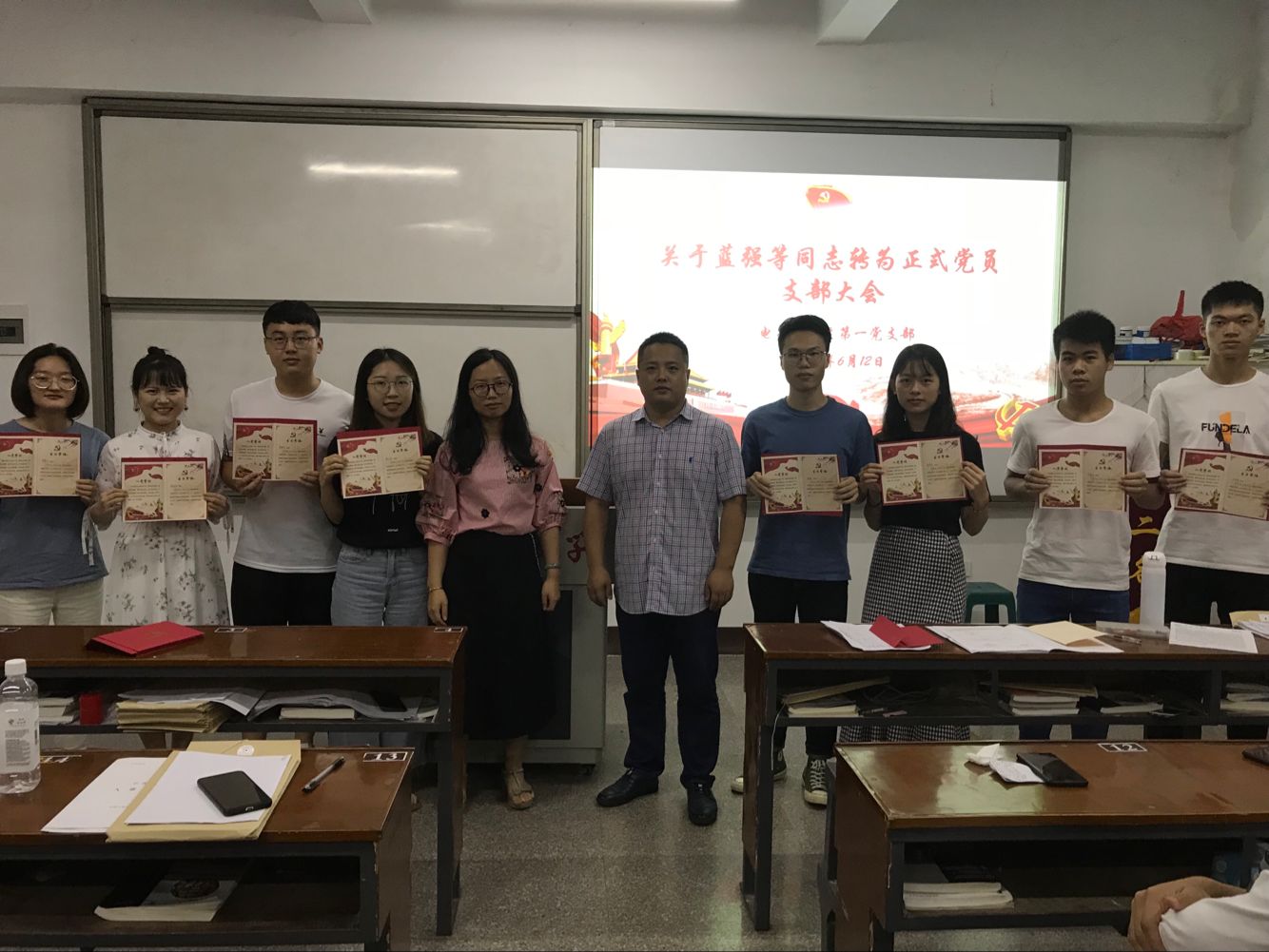 6月12日下午16:30,电子系学生第一党支部在共和215举行预备党员转正会议。申请转正的八位同志宣读转正申请,汇报预备期间的表现,表达了入党的决心。会议由支部书记赵宏岩主持,支部全体党员、预备党员参会。