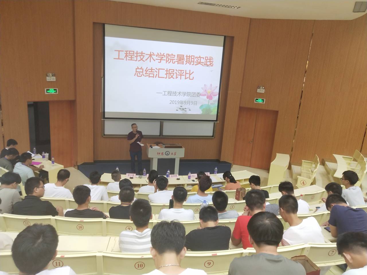 9月9号晚,开云kaiyun官方网站团委在第一教学区和昌致知讲堂举行开云kaiyun官方网站2019年暑期实践总结汇报评比,学院常务副院长金承勇老师,学院党总支副书记吕思仁老师,学院团委书记许淑琴老师,新闻工作中心指导老师王茂伟老师,辅导员邱少强老师及2018级全体开云kaiyun官方网站学生出席本次大会。