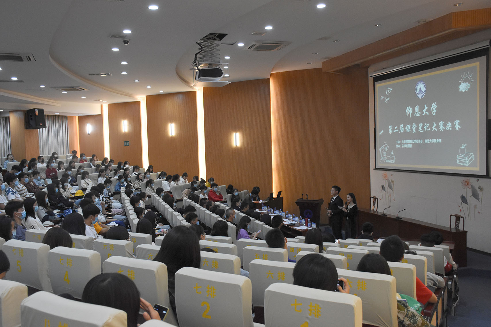 决赛环节分为两个部分:一是基础分,由评委依据选手的课堂笔记从布局整洁性、逻辑条理性、内容总结性、笔记方法及实用性等四个方面进行评分,占比80%;二是现场展示分,在决赛现场,各选手逐利用PPT的形式展示他们的课堂笔记,包含笔记的内容、做笔记的收获、对课程内容的学习收获等以及对课程的建议等。