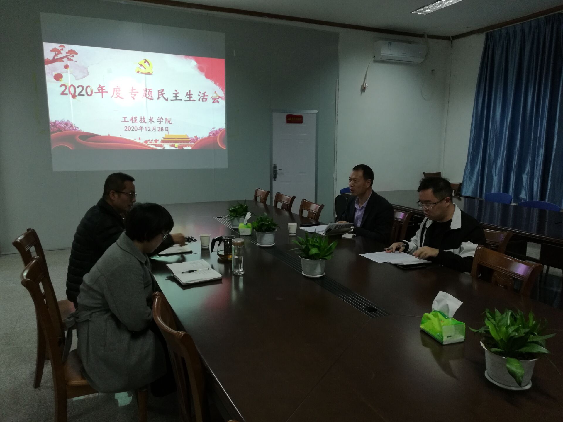 按照校党委《关于召开2020年度专题组织生活会的通知》要求,12月28日下午,我院领导班子围绕“全面从严治党,推动学校高质量发展”的会议主题在泽钏楼四楼会议室召开专题民主生活会,会议由学院党总支书记曾凤生主持。