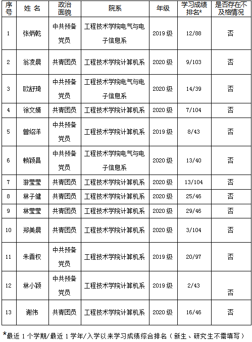 以上自评公开内容如有不实情况,可发送邮件至福建省学联秘书处邮箱 2354000013@qq.com或全国学联秘书处邮箱xuelianban@126.com反映。