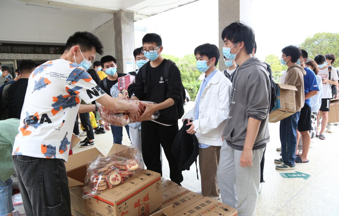在疫情封校期间,为保障在校学院师生食品物资的充分供应,开云kaiyun官方网站6位辅导员带领学生志愿者于4月13日下午在创业园门口为同学们发放由爱心企业捐赠的食品物资。