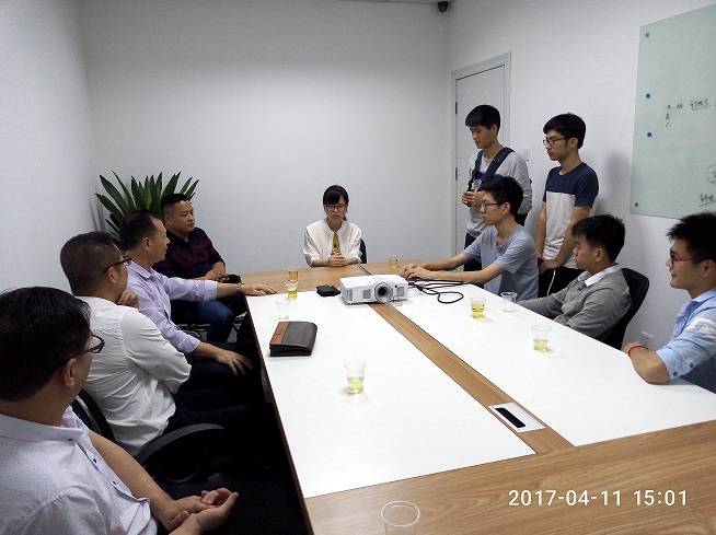 在厦门热拓公司,学院领导与实习学生进行座谈,了解实习情况。各位同学根据自己的实习经历,为学院的教学提出很多建议,比如企业对人才的需求情况,对学生素质的要求等。