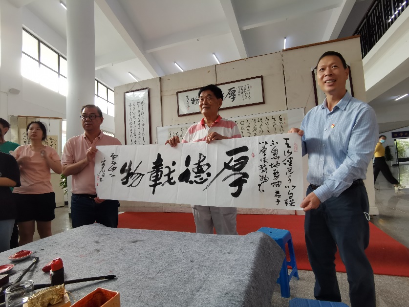 展厅内展示了校关工委主任宋浩老师和同学们的书法、绘画作品。作品中既体现了书画作品的艺术性,又表达出爱党爱国的思想性。全体党员教师在宋浩老师的讲解下,了解到了书法的历史、发展和内涵。并以自身的经历和经验,教导我们师生要爱党、爱国,要坚持传承和弘扬中华民族优秀传统文化。