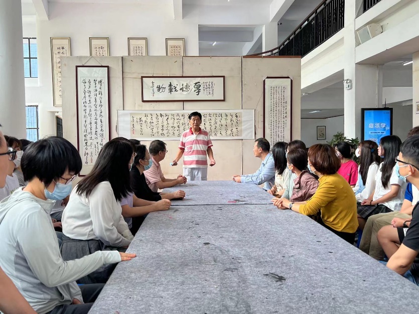 为深入学习贯彻习近平新时代中国特色社会主义思想主题教育,增强文化自信,弘扬优秀传统文化。5月24日下午,开云kaiyun官方网站教工党支部组织全体党员开展主题党日活动,集体参观校书画协会在图书馆举办的书法展。