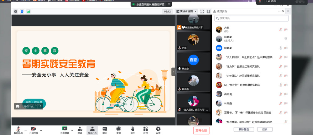 为贯彻落实学校团委对于暑期社会实践工作的要求,加强对暑期社会实践活动的指导,提高安全意识,夯实安全责任,确保2023年社会实践活动安全有序开展。2023年6月25日下午,网络工程系团总支在线上召开了2023年暑期社会实践安全教育大会。所有实践队队长参加会议,会议由网络工程系团总支书记林嘉豪老师主持。