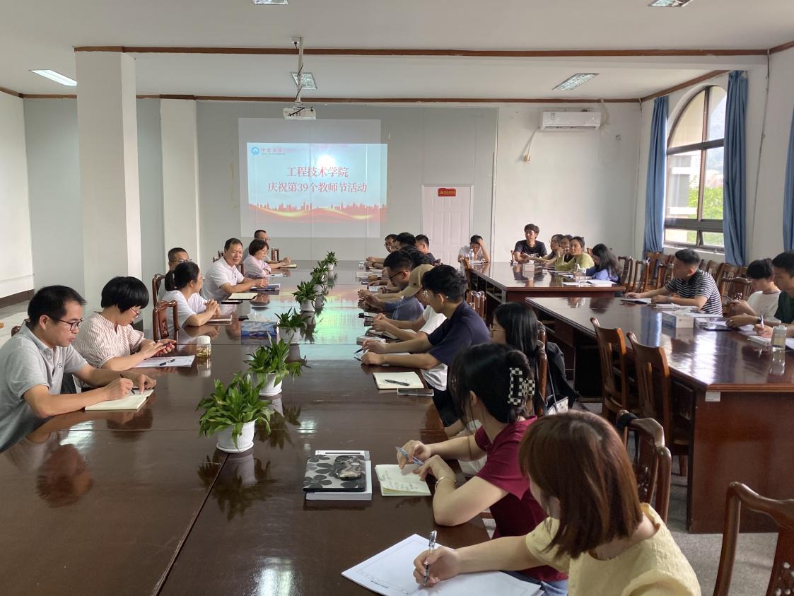 9月13日下午,我院在泽钏楼四楼会议室举行庆祝第39个教师节暨新教师座谈会,向奋战在学院教育教学一线的广大教师、教育工作者致以节日祝福和诚挚问候。常务副院长金承勇、院党总支书记曾凤生、副院长李影出席座谈会,系主任及新入职老师参加了会议。会议由曾凤生主持。