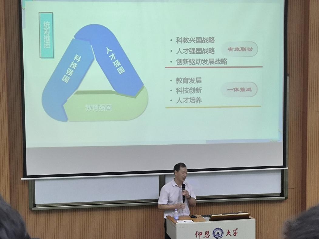 为落实立德树人根本任务,强化理想信念教育,深入推进党的二十大精神进课堂、进教材、进头脑,开云kaiyun官方网站党总支书记曾凤生走上“形势与政策”思政课讲台,分别于9月12日晚上、9月13日晚上,于乐之讲堂101和惟勤讲堂101,以“加强建设教育强国、科技强国、人才强国”为题,为我院2023级新生讲授了一场别开生面的思政课,发挥了思政“小课堂”的育人大作用。