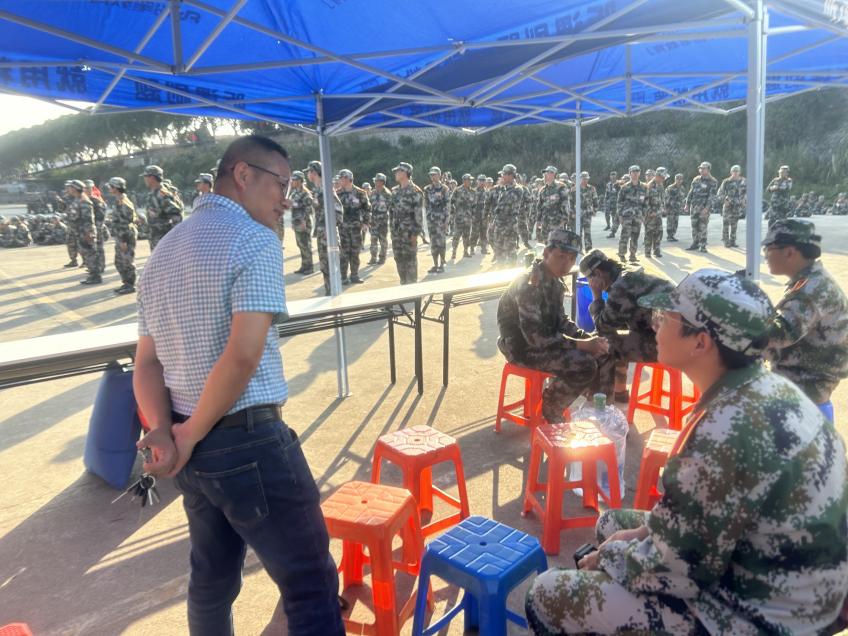 金承勇代表学院对教官们的悉心指导表示了感谢,并与带训教官深入交谈,详细了解军训情况,充分肯定了我院学生在军训中展现出的良好军容军貌。他强调,军训是落实立德树人的重要环节,是大学生活的重要组成部分。希望教官们在此次军训工作中高质量、严要求开展好相关训练工作,将部队的优良传统带到学校,传递给学生,让学生们在军训中磨练出坚强的意志品质和优良的生活作风。