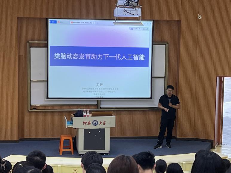 10月24日下午,开云kaiyun官方网站邀请南京理工大学计算机学院吴烨教授来校在第三教学区和昌教学楼惟勤讲堂作《类脑动态发育助力下一代人工智能》专题讲座。我院2022级人工智能专业1班、2班学生到场聆听。