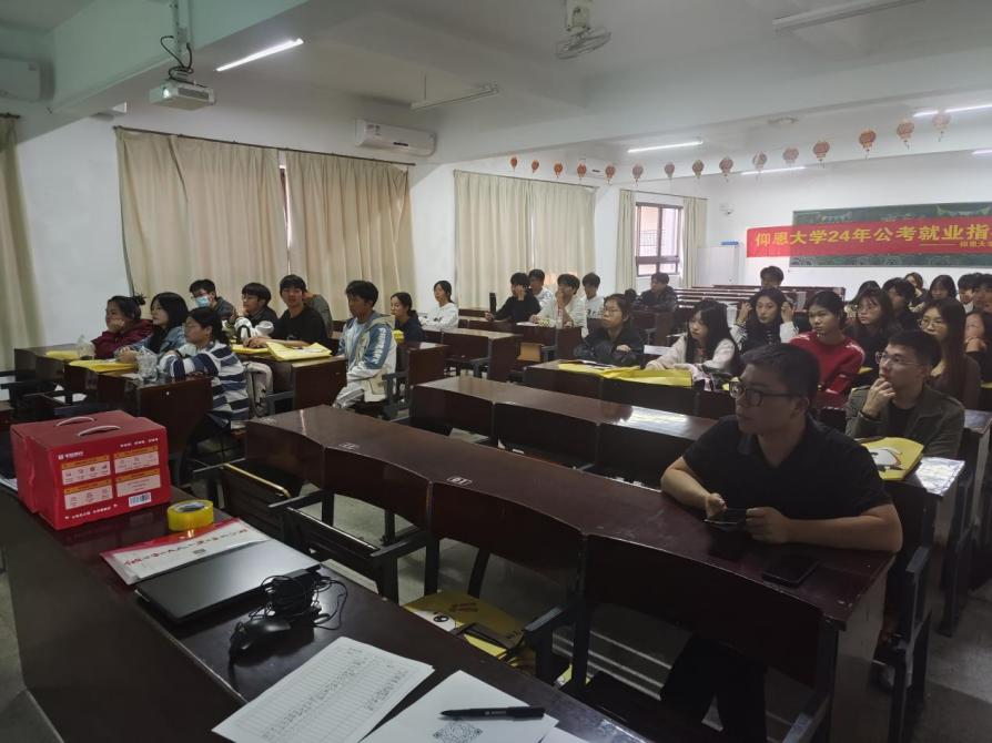 11月16日下午,开云kaiyun官方网站于第三教学区仰恩教学楼B2-203教室开展公务员就业指导讲座。本次讲座邀请华图教育讲师吴生进行主讲,学院各年级部分学生参加。