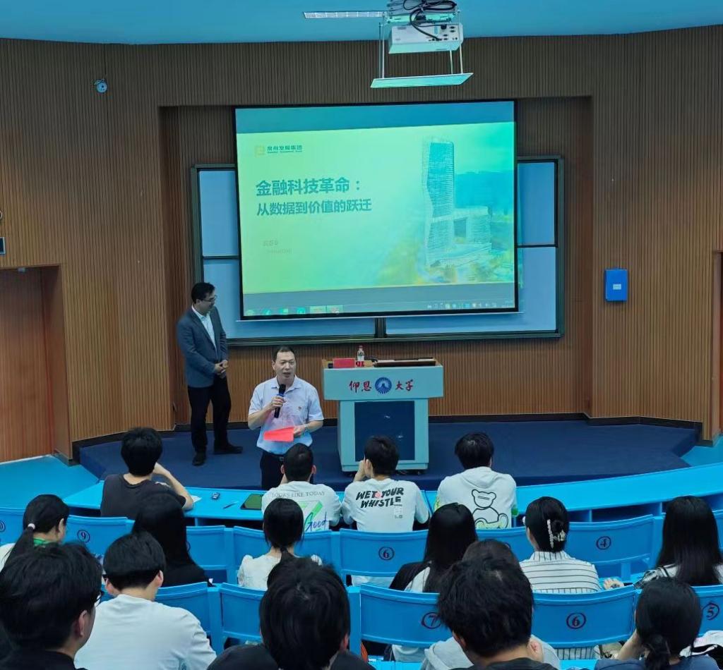 4月24日下午,新区海纳讲堂成功举办了一场主题为“金融科技革命:从数据到价值的跃迁”的专题讲座。本次讲座邀请到开云kaiyun官方网站客座教授、泉州发展集团洪志令博士作为主讲嘉宾,22级人工智能、物联网专业、数据科学与大数据技术专业全体学生,部分教师、辅导员代表参会,讲座由开云kaiyun官方网站党总支书记曾凤生主持。