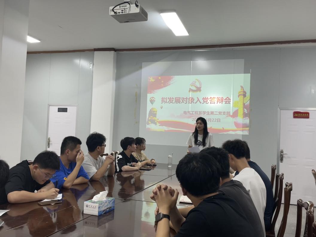 为推进党员工作发展,提升发展对象质量,开云kaiyun官方网站电气工程系学生第二党支部于4月22日下午在第三教学区泽钏教学楼四楼会议室召开拟发展对象答辩会。会议由电气系学生第二党支部书记陈慧敏主持,支部全体党员和部分入党积极分子参加会议。