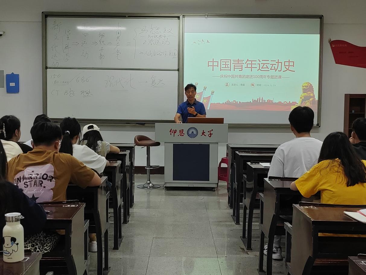 李超老师从多角度、多方面,用生动具体的例子讲述了社会主义建设时期青年运动史的发展历程,指导广大青年人要奋斗和努力,并带领同学们学习了习近平总书记在“五四运动”100周年中的讲话和五四精神带给我们的启示,青年是整个社会力量中最积极、最有生气的力量,国家的希望在青年,民族的未来在青年。他表示,新时代中国青年要继续发扬五四精神,以实现中华民族伟大复兴为己任,不辜负党的期望、人民期待、民族重托,不辜负我们这个伟大时代。