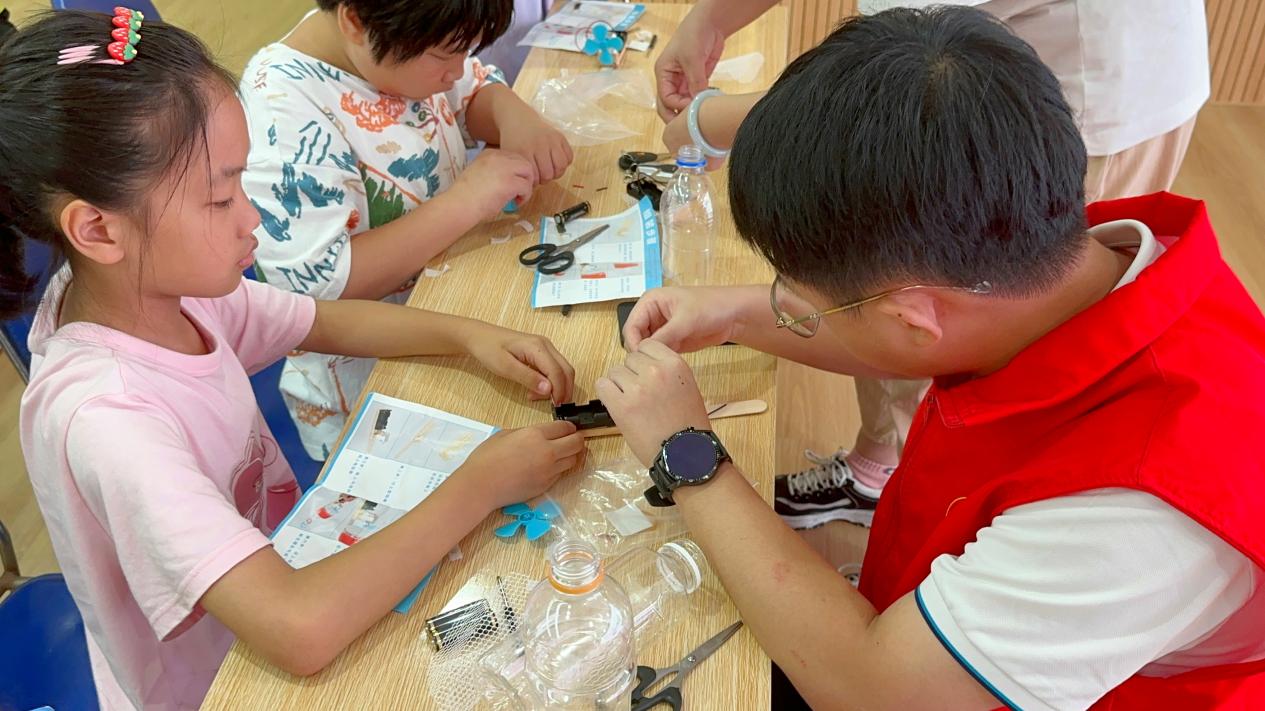 活动伊始,主持人陈琛向小朋友们介绍了环保吸尘器的制作原理及步骤。废弃的塑料瓶、电池和电线等物品,在孩子们的巧手中变成了实用的环保吸尘器。整个制作过程中,孩子们兴趣盎然、积极参与,不仅学会了如何变废为宝,更深刻体会到了环保的重要性。此次活动不仅锻炼了孩子们的动手能力和团队协作精神,还激发了对环保的热爱和关注。