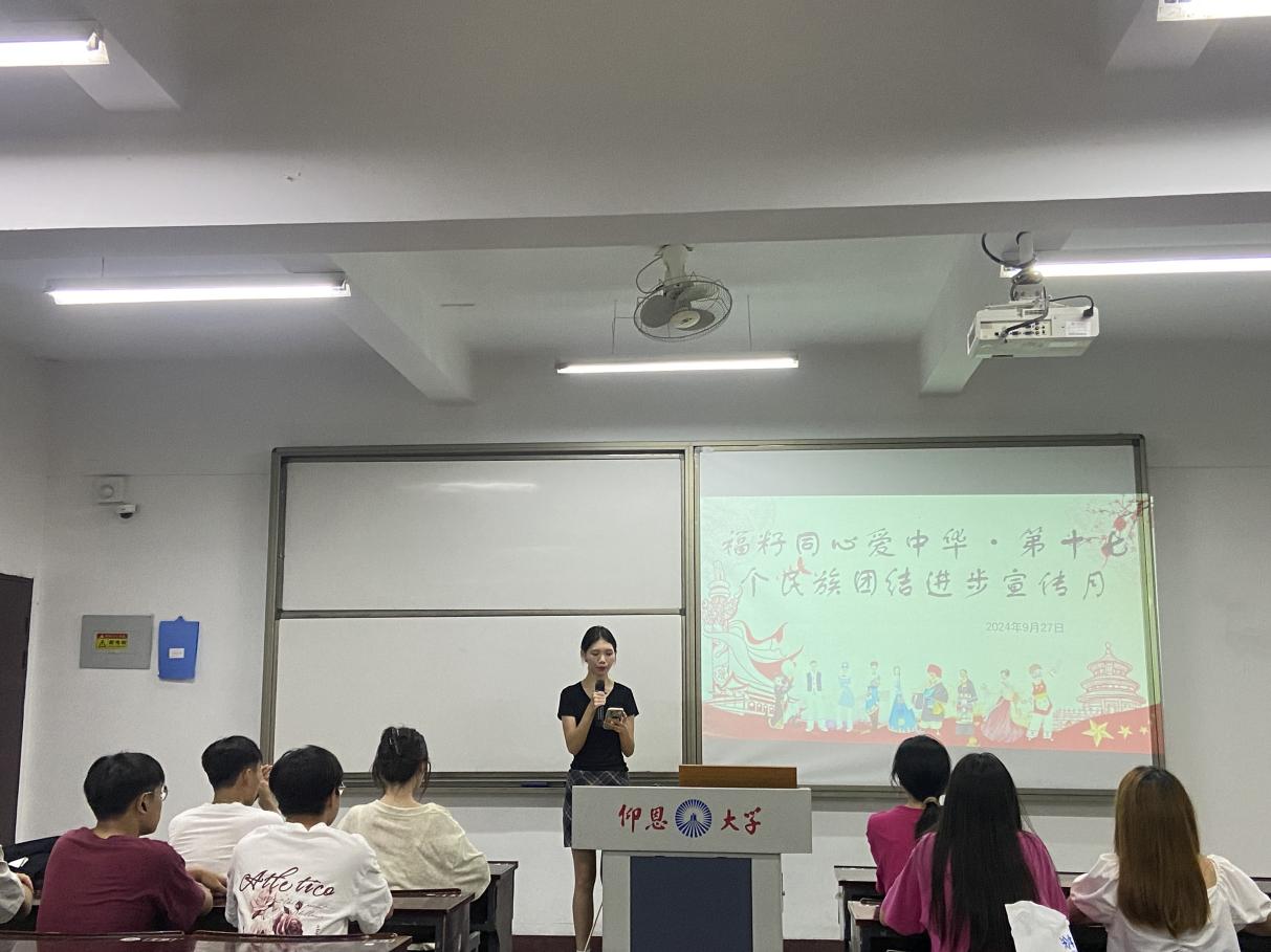 为进一步促进各民族之间的交流与融合,开云kaiyun官方网站开云kaiyun官方网站团委于9月26日在仰恩楼A3-105举办“福籽同心爱中华·第十七个民族团结进步宣传月”专题活动。来自各个民族的同学共同参与本次活动。