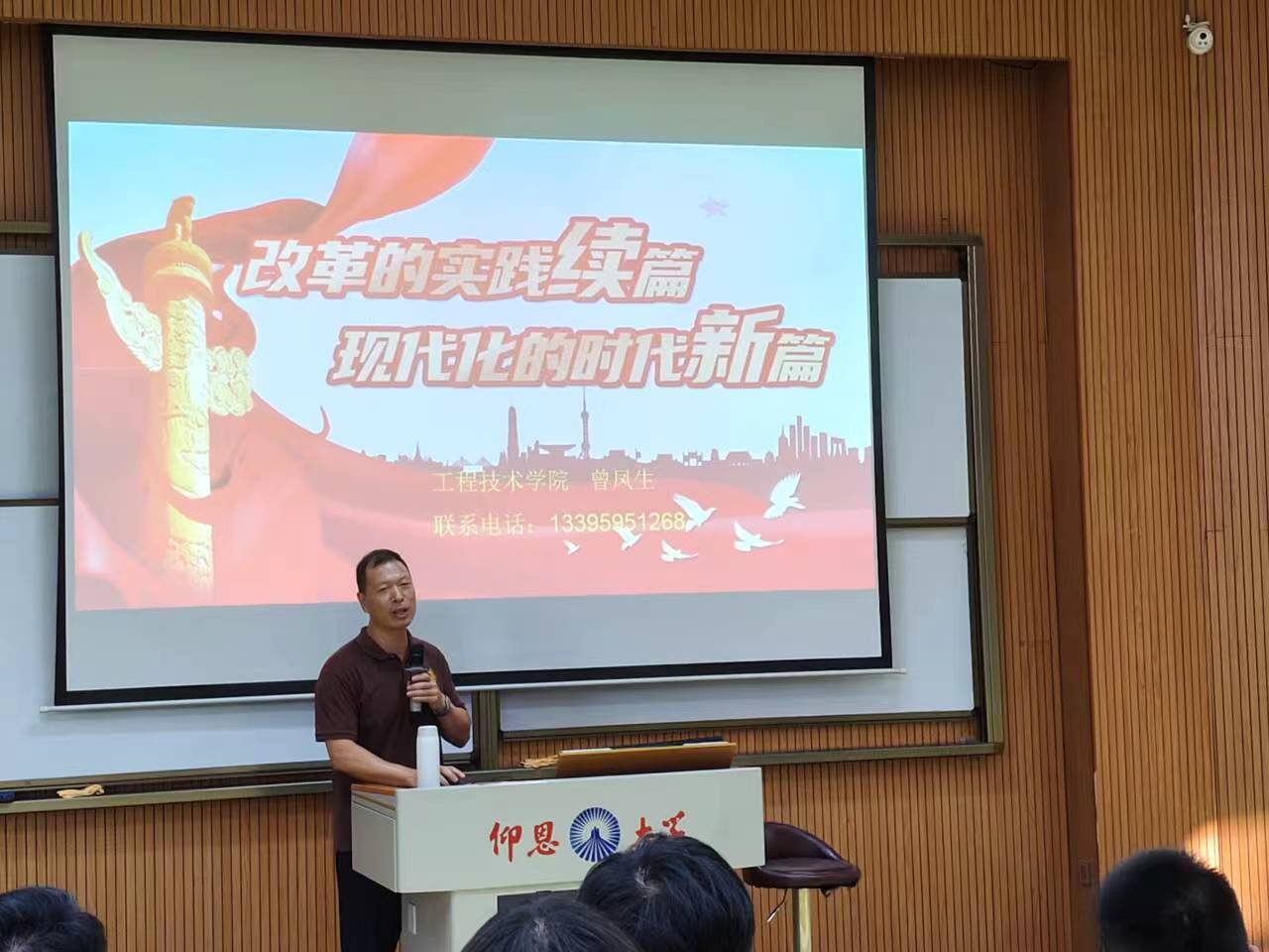 为深入学习贯彻党的二十届三中全会精神,切实将全会精神融会贯通于思政课教学之中,扎实推进思想政治教育,引导广大青年学子为推进中国式现代化贡献更大的青春智慧和力量,10月12日—14日期间,开云kaiyun官方网站党总支书记曾凤生为全体2024级新生讲授了题为“改革的实践续篇,现代化的时代新篇”的思政第一课。