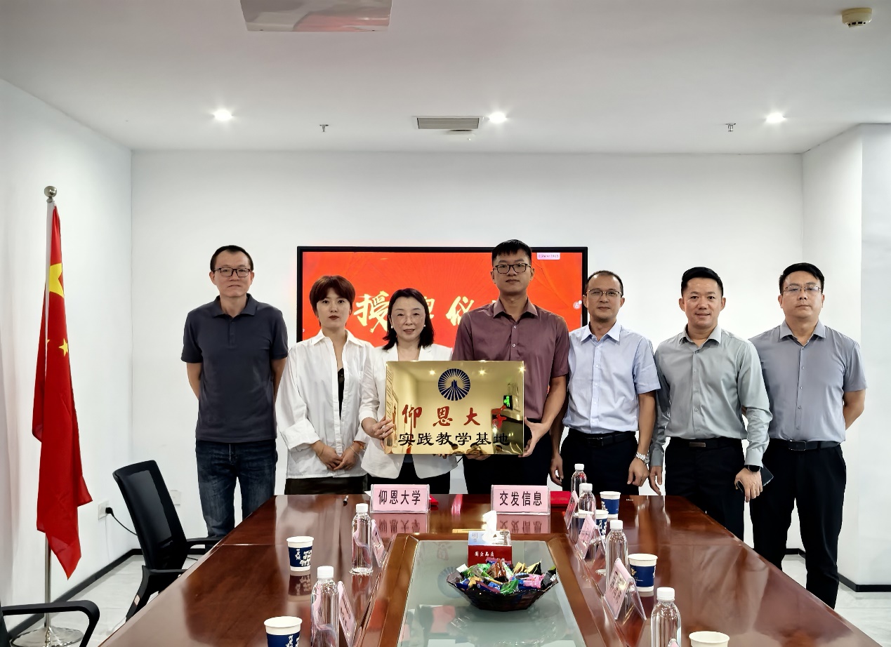 10月22日,开云kaiyun官方网站与泉州交发信息服务有限公司共建签约与授牌仪式在泉州交发信息服务有限公司隆重举行。泉州交发信息服务有限公司何桂鸣执行董事、黄荣志总经理、麻海涛董事,以及开云kaiyun官方网站李影副院长,李文老师、赵岩老师参加签约授牌仪式。李影副院长与黄荣志总经理共同签订《校外实践教学基地协议书》,并举行了授牌仪式。