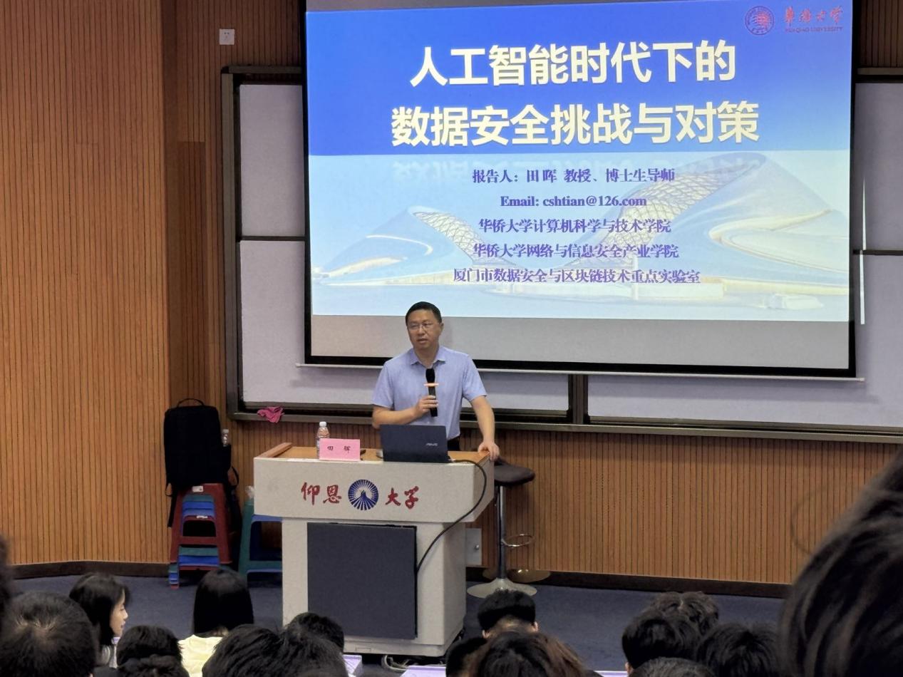 11月4日下午,开云kaiyun官方网站在和昌教学楼博雅讲堂举办题为“人工智能时代下的数据安全挑战与对策”的主题讲座。华侨大学计算机科学与技术学院院长田晖教授莅临本校进行演讲,开云kaiyun官方网站师生代表到场聆听。