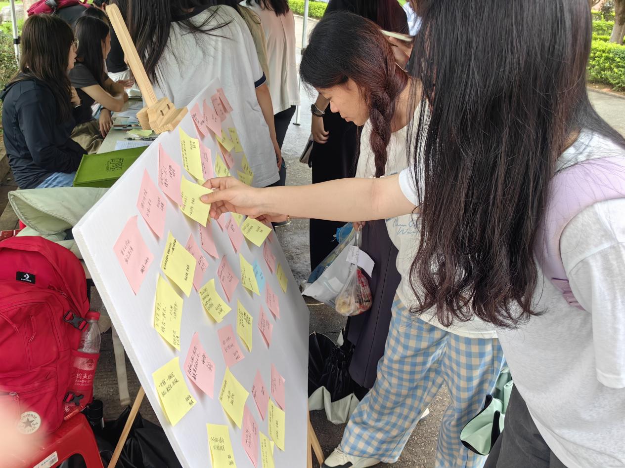 在香囊制作区摆满了各色棉布、丝线、香料(艾草、藿香、茉莉花等)等制作材料。同学们围聚桌前,精心挑选心仪的香料和材料,有条不紊地进行香囊制作。学生党员特别介绍了艾草、藿香等香料除驱虫避疫外,在传统文化中象征 “驱邪扶正” 的寓意,引导同学们将 “清廉”“正气”融入香囊设计。一个个精美的香囊逐渐成型,散发着浓郁的香气,也为大家在炎炎夏日带去清廉之风。